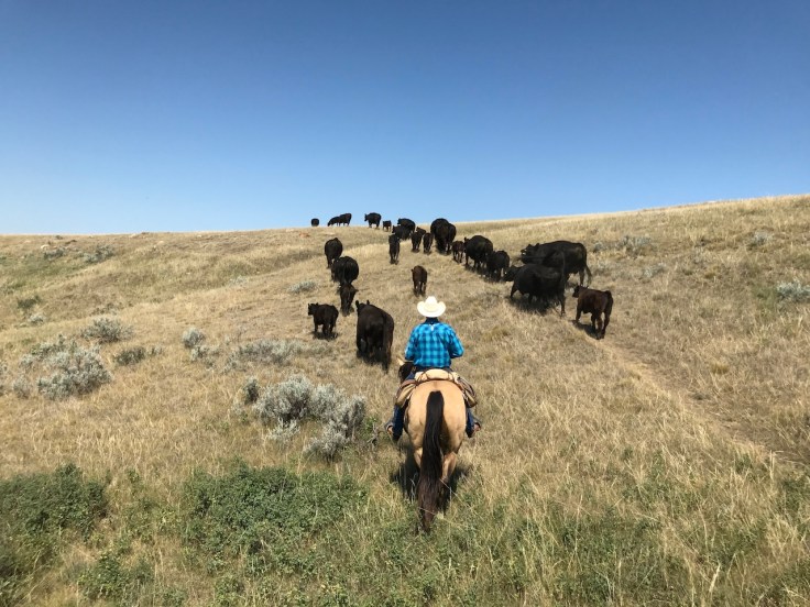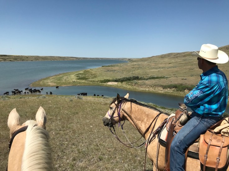 Heute reiten wir mit George und ich genieße es, diesem Stilisten im Sattel bei der Arbeit mit den Rindern zuzusehen. Sein Pferd „Juma“ ist eine Augenweide. George hält im übrigen nicht allzu viel davon, anzukündigen was er tut: Zack Zack hinterher und aufgepasst, heißt die Devise. Er möchte, dass Maria und ich unsere Köpfe benutzen und uns in die Arbeit auf dieser sogenannten ‚Working Ranch‘ einbringen, heißt: dafür sorgen, dass immer alle Rinder mitgehen, keine zurückbleiben oder ausbrechen. Das wäre leichter zu erfüllen, wenn man denn wüsste, ich welche Richtung genau George sie haben will…. nun, 50 Prozent meiner Entscheidungen scheinen richtig, denn ich höre keine Klagen. Die anderen 50 Prozent gehen in die Hose und ich kassiere spöttische Blicke. Ich verkneife mir – nicht ohne Mühe – Kommentare dazu, beiße die Zähne zusammen und mache weiter. Never surrender. Ich komme mir vor, wie ein Azubi am ersten Tag.