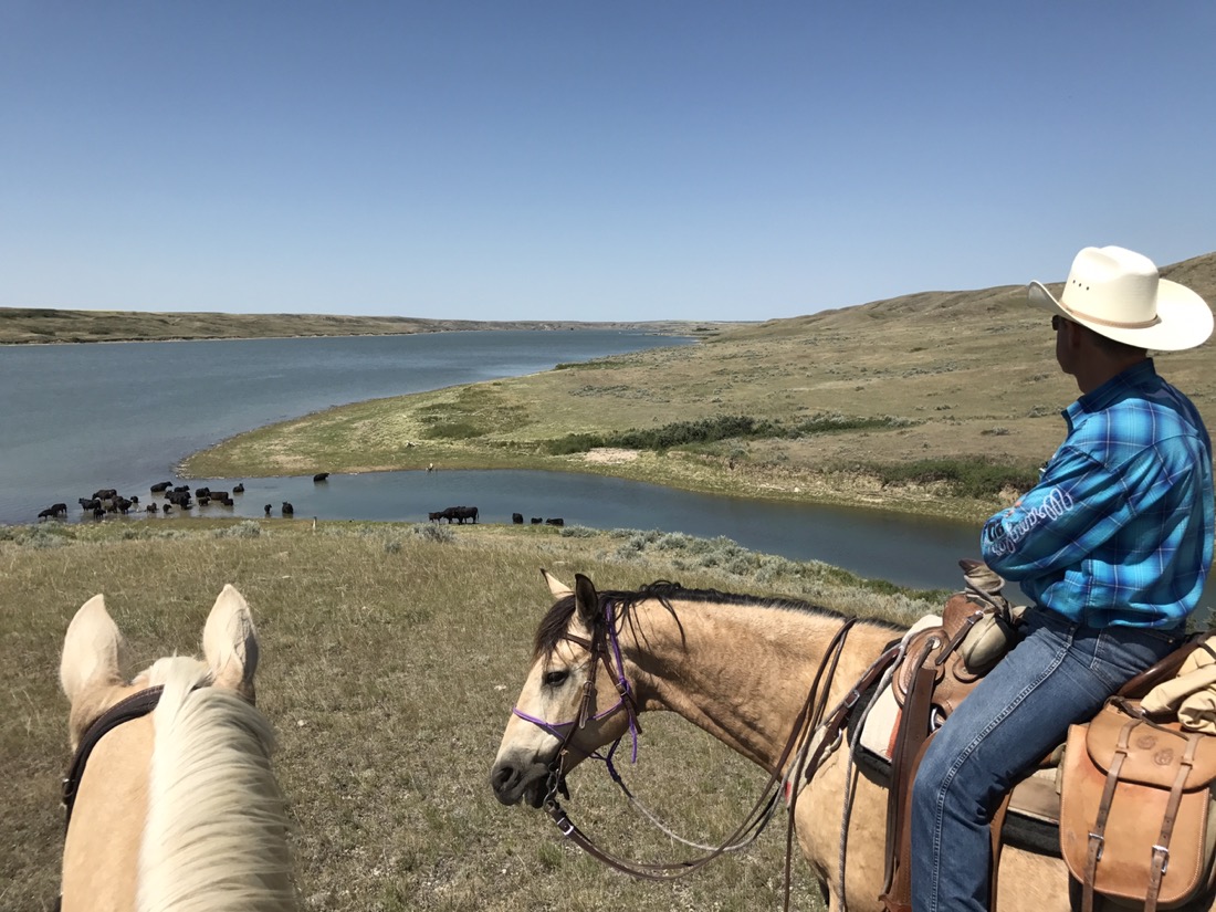Heute reiten wir mit George und ich genieße es, diesem Stilisten im Sattel bei der Arbeit mit den Rindern zuzusehen. Sein Pferd „Juma“ ist eine Augenweide. George hält im übrigen nicht allzu viel davon, anzukündigen was er tut: Zack Zack hinterher und aufgepasst, heißt die Devise. Er möchte, dass Maria und ich unsere Köpfe benutzen und uns in die Arbeit auf dieser sogenannten ‚Working Ranch‘ einbringen, heißt: dafür sorgen, dass immer alle Rinder mitgehen, keine zurückbleiben oder ausbrechen. Das wäre leichter zu erfüllen, wenn man denn wüsste, ich welche Richtung genau George sie haben will…. nun, 50 Prozent meiner Entscheidungen scheinen richtig, denn ich höre keine Klagen. Die anderen 50 Prozent gehen in die Hose und ich kassiere spöttische Blicke. Ich verkneife mir – nicht ohne Mühe – Kommentare dazu, beiße die Zähne zusammen und mache weiter. Never surrender. Ich komme mir vor, wie ein Azubi am ersten Tag.