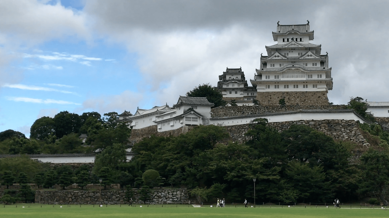 Während der Fahrt nach Himeji bietet sich mir aus dem Fenster des Hochgeschwindigkeitszuges Shinkansen das schon gewohnte Bild einer nicht enden wollenden Betonwüste. Telegraphenmasten und Stromleitungen vervollkommnen das Bild. Ich nehme an, dass die häufigen Erdbeben eine Verlegung der Stromversorgung unter die Erde unmöglich machen. Statistisch gesehen müssten wir in unseren zwölf Tagen im Land übrigens ein Erdbeben miterleben!Die Burg Himeji mag dem ein oder anderen bekannt vorkommen, denn hier wurde die Fernsehserie „Shogun“ gedreht. Die Burg, wie sie heute aussieht, stammt aus dem Übergang vom 16. zum 17. Jahrhundert und ist eine der wenigen erhaltenen (allerdings restaurierten) Bauten dieser Art in Japan. Wie fast alle historischen Gebäude ist auch sie aus Holz gefertigt, einem vergänglichen Baustoff, was erklärt, warum nur so wenige alte Bauwerke heute noch stehen.