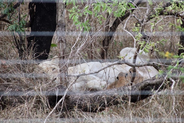 Und wie es so oft ist, wenn du denkst es kommt nichts mehr, dann schlägt das Leben einen Haken. Längst auf der Hauptstraße und keine zwei Kilometer vor der Lodge liegt doch tatsächlich die berühmte weiße Löwin von Timbavati am Zaun und säugt vier winzige, wenige Tage alte Junge! Das kann man nicht planen und nicht buchen, das kann man vom Schicksal nur geschenkt bekommen.