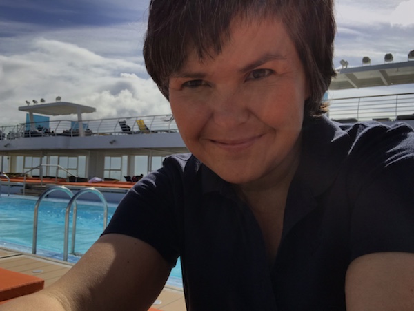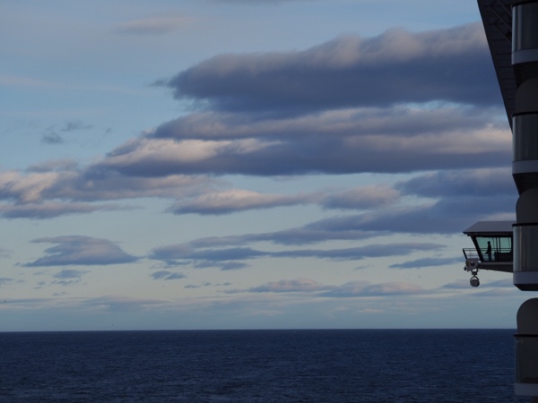 Auf See. Sonne, Wind und Wolken wechseln sich ab. Unterm Strich haben wir bisher großes Glück mit dem Wetter. Ein paar sonnige Stunden am Pool waren dabei und alles ist besser als 40 Grad in Hameln!