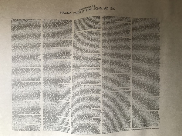 Jedenfalls habe ich seit Jahren zwei Kopien dieser Magna Carta in Besitz, die originale Version, welche bei uns im Flur hängt, und eine zeitgemäße Übersetzung.