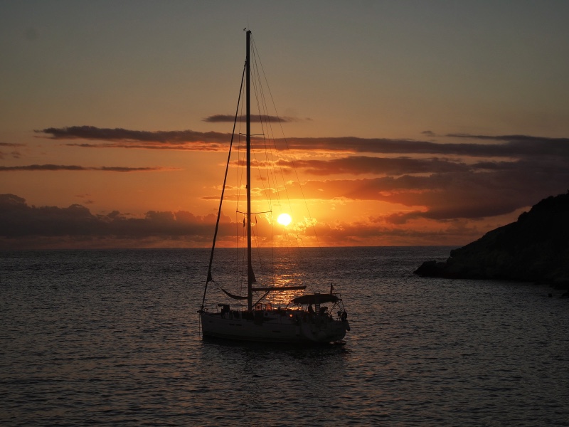 Wir brechen das Segeln heute schon mittags ab und machen in einer Traumbucht der unbewohnten Insel Antipaxos fest. Das Wasser schimmert in blau-grün-türkis und zwei Strände laden schon wieder zum Lagerfeuer. Die hufeisenförmige Bucht öffnet sich nach Westen. Wenn also keine dicken Wolken mehr aufziehen dann wird das hier nachher der perfekte Sonnenuntergang.