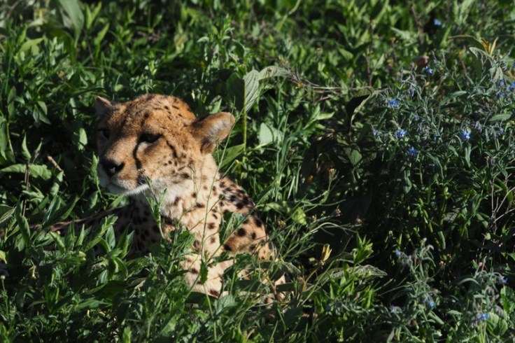 Mittags ziehen wir weiter in Richtung Ndutu, wo die riesigen Gnu- und Zebraherden der großen Tierwanderung sich jetzt aufhalten sollen. Schon die Anfahrt ist verheißungsvoll. Je näher wir der Gegend um die Sodaseen kommen, deren Ufer nach der kleinen Regenzeit mit gehaltvollem Gras voller Mineralstoffe bewachsen sind, umso mehr Tierherden treffen wir an. Zum Höhepunkt des Tages werden später zwei Geparde, Mutter mit Kind, die im Gras versteckt auf ein Abendessen lauern. Es ist absolut denkbar, dass sie heute noch jagen, denn ihre Bäuche sind flach und der Wind steht passend zur sich langsam nähernden Gnuherde, in der sich genügend Halbstarke tummeln, die als Beute für die schnellen Jäger infrage kommen. Jetzt brauchen wir Geduld und Sitzfleisch, eine Herausforderung nach nunmehr 11 Stunden auf der Piste bei Hitze und Staub! Ich kann’s nicht ändern – ich muss mal. „Hakuna Shida!“, sagt Karim. <Kein Problem>. Er bringt uns ein paar hundert Meter quer ab zur Szene und als ich gerade aussteigen will bemerke ich trocken: „Also nee, Karim, hier isses auch schlecht!“ Denn nur wenige Meter neben dem Auto liegt eine dritte Katze auf der Lauer. Sie sind derart gut getarnt, man muss wirklich höllisch aufpassen und immer auf der Hut sein.