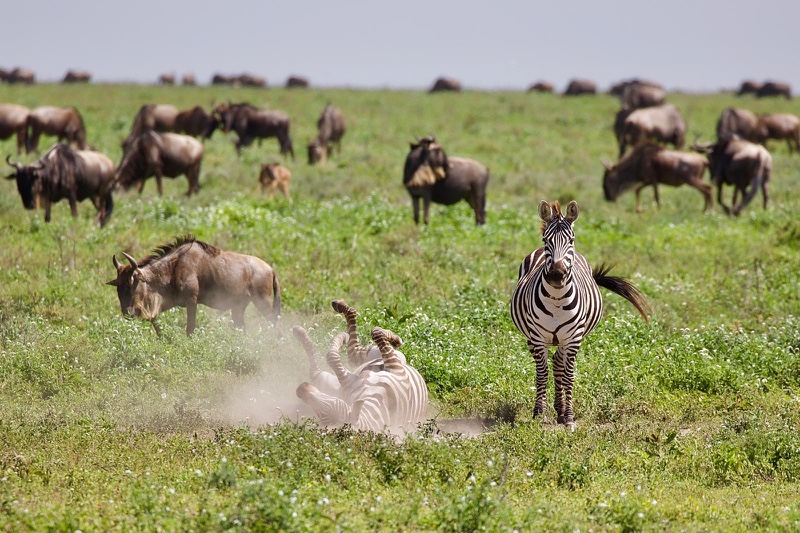 Im Januar und Februar gibt es nichts Besseres zur Tierbeobachtung als dieses NDUTU, diese Region aus Staub und Sodaseen, die nur nach der kleinen Regenzeit grün und einladend wird. Wenn die Herden ab Ende März endgültig Richtung Zentralserengeti weitergezogen sind beginnt eine harte Zeit für die ortsgebunden Raubkatzen, die sich für den Rest des Jahres mit den wenigen genügsamen Antilopen und Giraffen als Beutetiere begnügen müssen, die ebenfalls hier zu Hause sind.