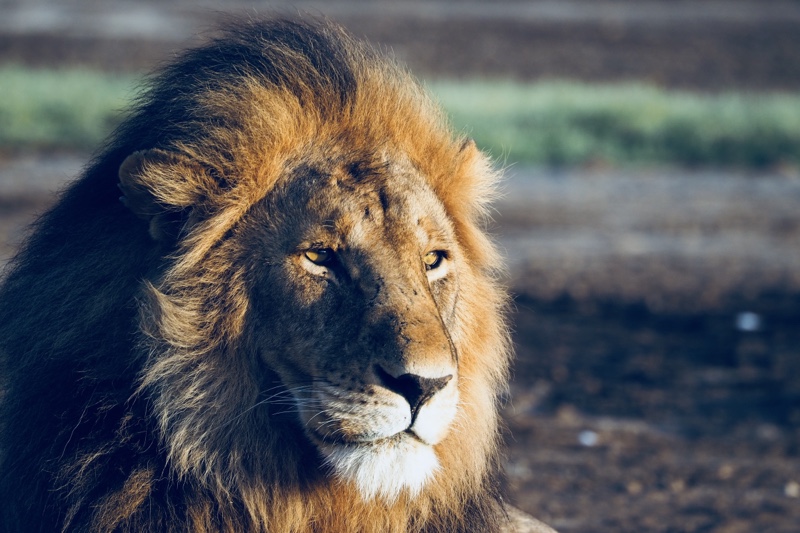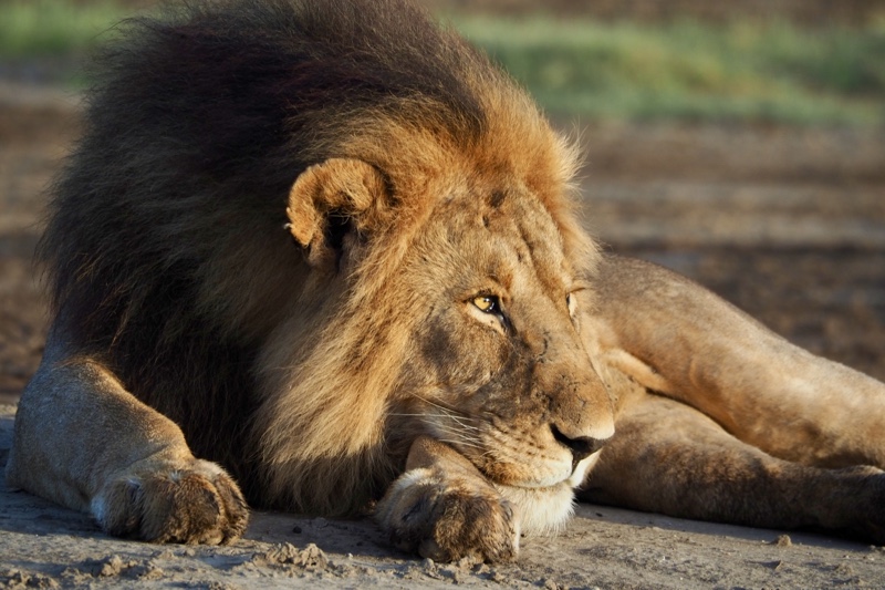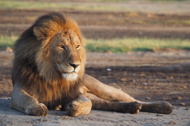 Wir reißen uns los, wollen gerade zurück in Richtung Camp, um nach unseren Lieblingsgeparden zu schauen, als Karim leider, leider schon wieder in die Eisen gehen muss: Zwei Brüder, gewiss die Väter der Löwenkinder, liegen unweit des Rudels entspannt aber doch wachsamen Auges im Sand und genießen die wärmenden Strahlen der aufgehenden Sonne. Das erste Licht des Tages lässt ihre muskulösen und makellosen Leiber in allen Farbstufen von orange bis pink schimmern, und das steht ihnen gut. Es sind zwei äusserst stattliche Kerle mit gewaltigen Mähnen und bildschönen, ausdrucksstarken Gesichtern. Sie scheinen sich ihrer Unantastbarkeit vollkommen bewusst zu sein, wie sie die Lage im Blick und unter Kontrolle haben und von Zeit zu Zeit huldvoll in die Kamera schauen – würdevoll, königlich eben.
