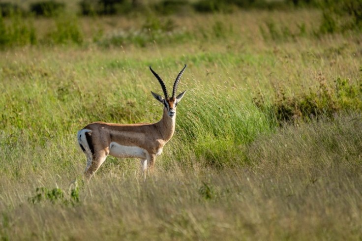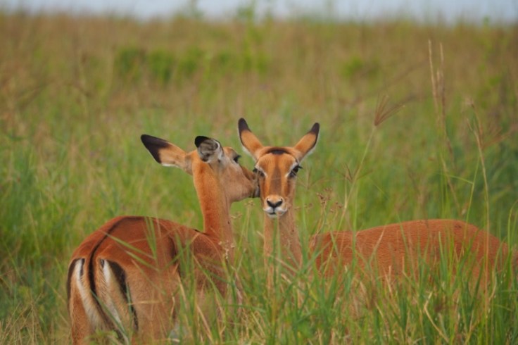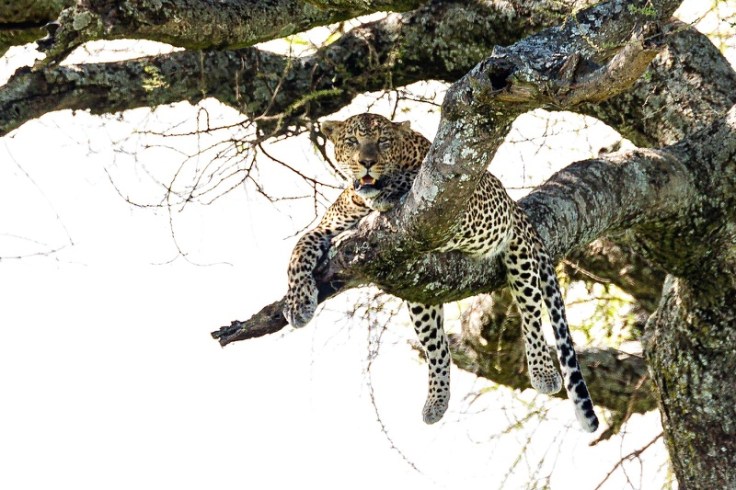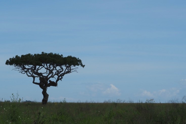 Wir finden im Abstand von nur 30 Minuten zwei andere Leos, die es sich jeweils in typischer Manier in Astgabeln, bevorzugt in denen von Leberwurstbäumen, bequem machen. Einer steigt gerade herab und jetzt wird’s spannend. Eine Grant-Gazelle lebt mehr als gefährlich. Ich schätze die Distanz zwischen Katze und Beute auf gute 800 Meter. Im hohen Gras gelingt es uns nicht, dem Meister der Tarnung beim Anpirschen mit den Ferngläsern zu folgen. Nur einmal sieht Mirko ihn für wenige Sekunden auf etwa halber Strecke, als das Tier den Kopf hebt und die Gazelle ins Visier nimmt. Es sind noch immer mehr als 500 Meter und die nichts ahnende vermeintliche Beute zieht zufällig langsam aber sicher in die „falsche“ Richtung von dannen, nämlich weg vom Mietzekater. Der Wind aber steht günstig, die Jagd könnte trotzdem jederzeit beginnen. Es ist mucksmäuschenstill in den Autos und vielleicht kommt das der Gazelle spanisch vor, denn sie macht sich wenige Minuten später in großen Sätzen endgültig aus dem Staub. Den Leoparden sehen wir nicht wieder.