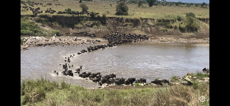 Meine Gäste haben keine Ahnung davon, was es bedeutet, auf ein „Crossing“ – so nennt man es, wenn die Gnus und Zebras den Mara-Fluss überqueren – zu warten. Hier sind so unglaublich viele Tiere unterwegs, dass diese Querungen mehr oder weniger am laufenden Band passieren und wir nur der spritzenden Gischt zu folgen brauchen.