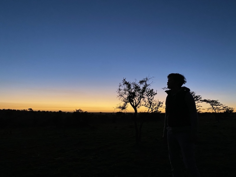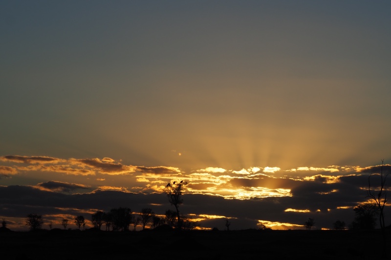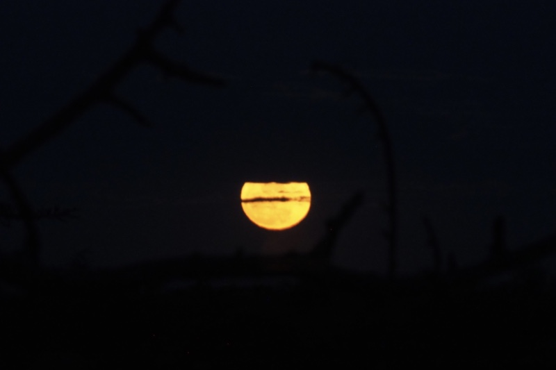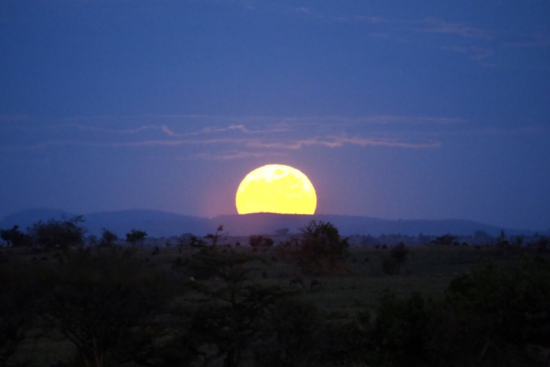 Neben all den wunderbaren Tierbegegnungen sind die Sonnenauf- und Untergänge dieses Jahr besonders traumhaft, weil es nicht diesig ist. Bilderbuchartig zieht sich ein gelblich-pinker Streifen ersten Lichts über die Hügelkämme bevor die Sonne kommt und am Abend brennt der Himmel lichterloh. Und dann… tja dann geht der Vollmond auf…