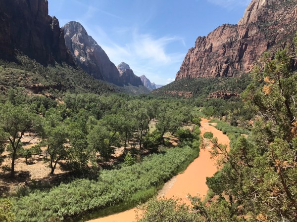 Die meisten Wanderpfade im Nationalpark liegen innerhalb des großen Canyons und sind nur per kostenlosem Shuttle zu erreichen. Die haben das hier perfekt durchorganisiert: Zunächst geht es per Springdale-Shuttle zum offiziellen Parkeingang, dort dann mit weiteren Bussen den Canyon beliebig weit hinauf, mit zahlreichen Zwischenhalten, wo jeweils Wandertrails in unterschiedlichen Schwierigkeitsstufen starten und enden. Wir sind ein bißchen spät dran heute und stehen erstmal in einer langen Schlange für den Canyon-Shuttle an. Es geht aber recht flott voran und schon sitzen wir im luftigen Bus. Die Fahrer sind mit Mikrofonen ausgestattet und erzählen Wissenswertes über die Flora und Fauna und beschreiben kurz die Wanderwege an den jeweiligen Stationen. Es kommt mir ein bißchen vor wie Jurassic Parc ohne Dinos, aber es überwiegt die Einsicht, dass hunderte Fahrzeuge, die alle parken müssten, in diesem Canyon nicht umherfahren können. „Tag 24, 26. Juli: Zion Nationalpark“ weiterlesen